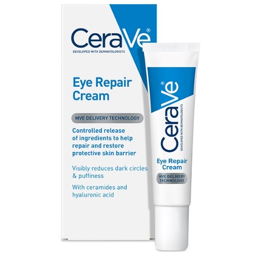 Cerave eye repair cream refreshes tired eyes by combating dark circles and puffiness.